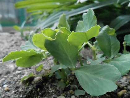 1枚目の写真は,エンドウマメです。鳥に葉をほとんど食べられてしまうというアクシデントもありましたが,ネットをかけて大きくなるのを待ちました。ようやくここまで大きくなりました。暖かくなったらつるが伸びてくることでしょう。