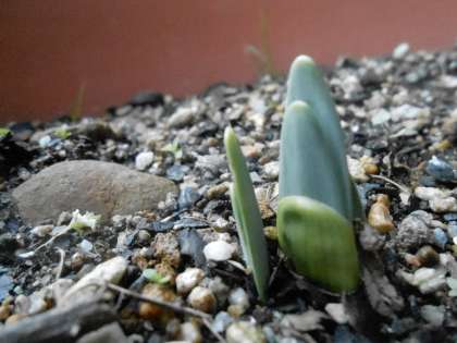 さて,そんな寒さの中でも春が近づいてきています。幼稚園で栽培しているいろいろな植物が芽吹いてきました。今日は,現在の様子を紹介したいと思います。