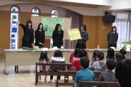 学校で勉強されていることを生かして,いろいろな京野菜を実際に持ってきて紹介してくださったり,野菜に関するクイズで子どもたちを楽しませてくださったり,そして京人参のケーキを試食させてくださったりしています。これも大きな魅力の一つです。