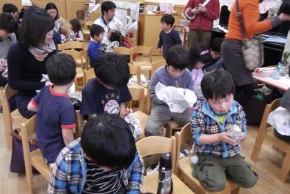 紙芝居の読み聞かせを聞かせてもらいながらほかほかのお芋をみんなおいしそうに食べていましたね。