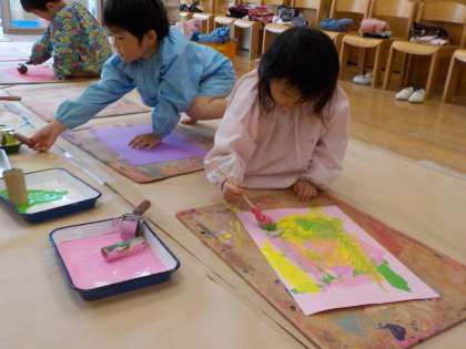 4歳児は,絵の具をつかってきれいな色や模様をつけました。