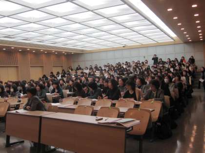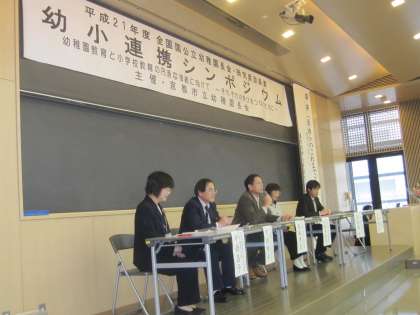 1月22日(金)全国国公立幼稚園長会研究奨励事業「幼稚園教育と小学校教育の円滑な接続に向けて(接続期の教育を考える)」シンポジウムが開催されました。近畿地区を中心に全国から国公私立幼稚園、小学校、保育所、行政関係者460名の参加があり2講義室を使ってモニターでの対応もあった研修会になりました。学びをつなぐことについて、小学校長・幼稚園長・京都市人事交流教員の提案や東京教育大学教授秋田喜代美先生の講演をききました。子どもの学びをつなぐには、教師自身が様々につながり学びあうことが必要であり、一人ひとりが自分から行動していくことの大切さを改めて痛感しました。これからにしっかり生かしていきたいと思います。ありがとうございました。これからもよろしゅうおたのもうします。