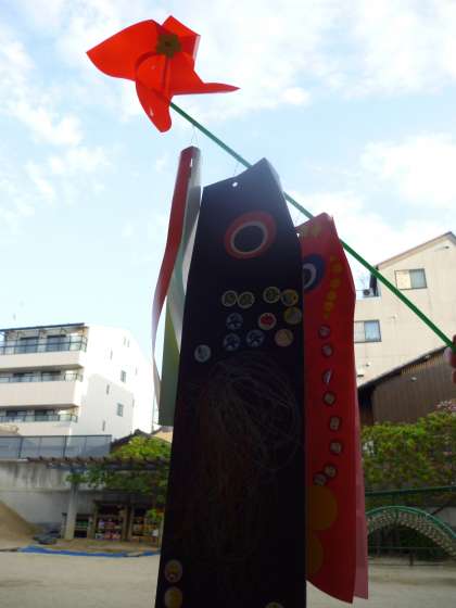 同じ鯉のぼりでも学年毎に違うんです。子どもたちはそれぞれに,工夫してつくりましたよ。