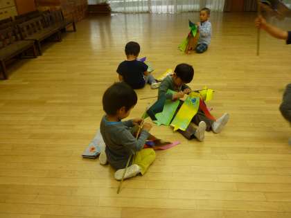 5月5日はこどもの日ですね。幼稚園の子どもたちは,こいのぼりをつくりました。