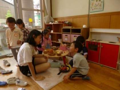 今日は忍者ごっこの家にお姉ちゃんが来てくれて,嬉しそうな男の子たち。片づけもいつも以上にはりきっていました。