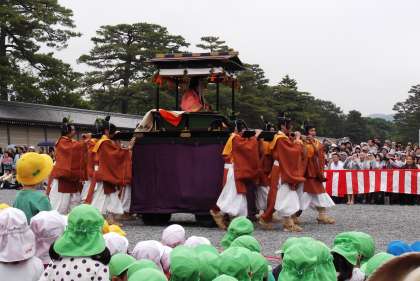 そしていよいよ輿に揺られて斎王代が登場です。子どもたちこのおひめさまの登場を待っていました。「あっ。おひめさまや」「きれい」という声も聞かれていました。