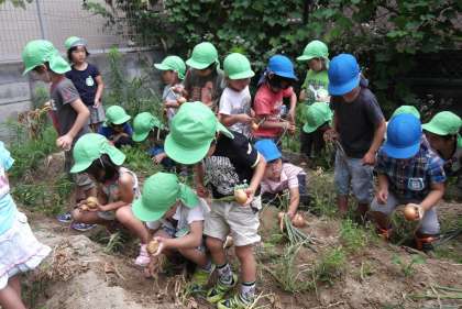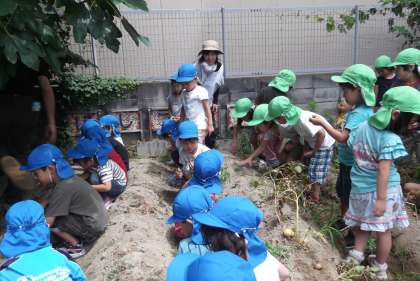 今日は,5歳児がほしファームに出かけました。4歳児の時に植えたジャガイモやタマネギがそろそろ収穫できるのではないかという事で,楽しみに出かけました。