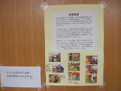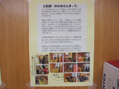 子ども達がつくった舞台では、人形劇、なぞなぞ、さめアタックの3グループが発表しました。お客さんから拍手をいっぱいもらっていました。本番につよいのはさすがに年長ですね。