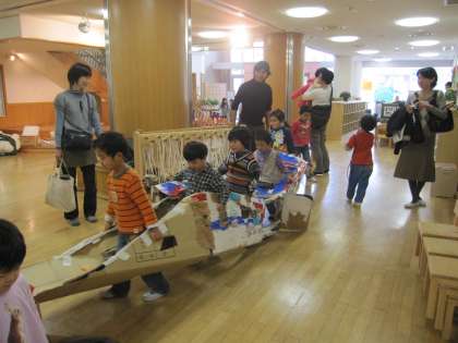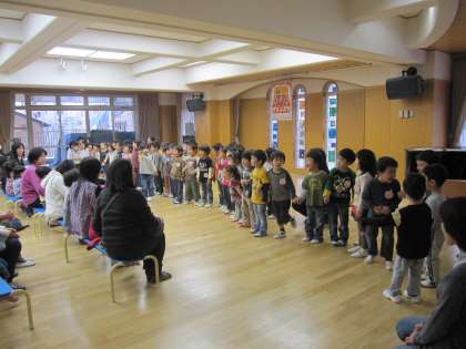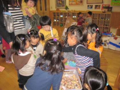 22年度から入園する子ども達が幼稚園に来てくれました。遊戯室で園児の歌を聞いたり一緒に手遊びをしたり、1階ホールや保育室で在園児と一緒に遊んだりしました。新幹線ごっこのお客さんになったり、ひなあられやさんで本物のひなあられのお土産をもらったり、保護者と一緒に参加していただきました。22年度みんなで53名の新しい友達が来てくれます。次は入園式ですね。4月8日お待ちしています。ありがとうございました。