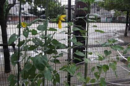 それからポップコーンやひまわりが風で倒されないように支えをしました。互いに支え合って風に耐えてほしいと願っています。今年はポップコーンやサツマイモがとても順調に大きくなっています。ひまわりも次々と蕾をつけ始めています。どうぞ台風の雨・風があまり強くなく無事に通り過ぎていってくれることを願っています。