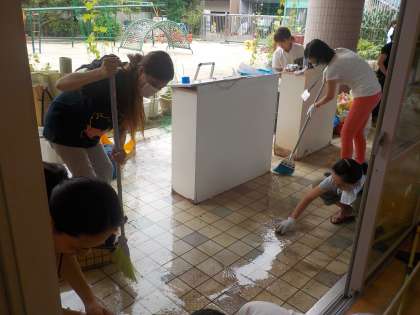 子どもたちが夏期プールで楽しく遊んでいる間,保護者の方が園内の様々な所を綺麗にしてくださりました。