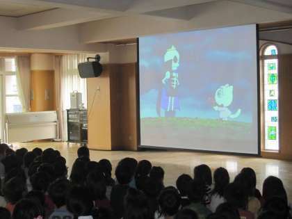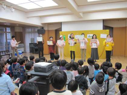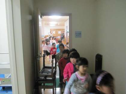 防犯訓練をしました。今年は全学年が参加しました。合図の園内放送が流れ、子ども達は先生と一緒に隣のみらい館との連絡口を通って、みらい館2階に避難しました。その後幼稚園の遊戯室で「へいあんレデース隊」のみなさんの劇をみせてもらったり、ビデオを見たりしました。やめて!たすけて!と大きい声を出すことや、知らない人に絶対についていかないことを教わりました。本当には決して体験したくないことですが、今日の訓練がいざと言う時にきっと役立つでしょう。ご家庭でも子どもと話し合っていただければと思います。五条防犯推進協議会の大森会長さまはじめ五条警察署関係のみなさまありがとうございました。今後ともどうぞよろしゅうおたのもうします。