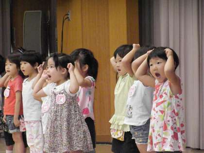 その後は,各クラス遊戯室で歌や手遊びを見て頂きました。おじいちゃんおばあちゃんの温かい雰囲気に子どもたちもとても気持ちよく歌ったり遊んだりしていました。たくさん拍手をもらって子どもたちはとても嬉しそうな顔をしていました。