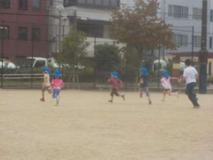 これまでしていた園庭よりも広い所で,気持ち良く体を動かしていました。