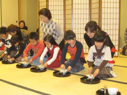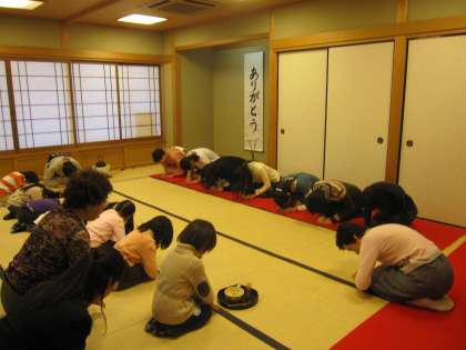 今日で親子お茶会が終わりました。一席に7、8組の親子が参加します。卒園記念の一人ひとりが絵付けをした茶碗の初使いでした。今年度は新型インフルエンザの加減で例年のようなお稽古はできませんでしたが、どの子どもも心を込めておもてなしをしていました。礼の姿からはみんながありがとうでつながっている温かい雰囲気を感じ取ることができました。園長室では、小さいこどもさんの託児です。今日は7人、前回は11人でした。OBの保護者の方の応援も得てみんなでみんなの子育てを支援する託児も今年は7回目です。みなさんのあたたかさを嬉しく思っています。ありがとうございます。どうぞよろしゅうおたのもうします。
