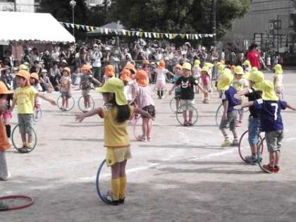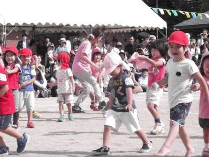3歳児,4歳児,5歳児それぞれが自分の力をいっぱい発揮して運動会のプログラムに取り組みました。たくさんのお客様の前で嬉しかったり,緊張していたり,恥ずかしかったりという姿も見られましたが,3歳の「ピクニック」も4歳の「フープと仲よし」も5歳の「ぐんぐんどこまでも」もいつも以上に張り切っている姿がありました。