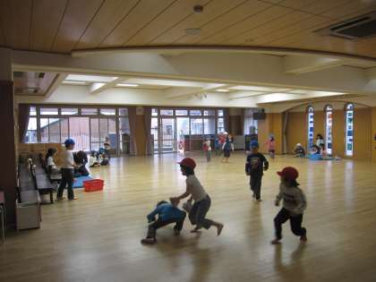 修了を間近にひかえた年長児たちが帽子取りの遊びをしていました。裸足でシャツ1枚になって思い切り走り回っていました。取ったり取られたり、友達の応援をする子ども達の弾んだ声もひびきます。元気な子ども達がいっぱいで幼稚園が喜んでいるように感じました。やっぱりもうすぐ1年生、とても逞しくなったなあと思いました。子ども達を見ていると嬉しくて何だか涙ぐんでしまうこの頃です。