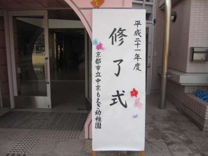 3月18日(木)修了式でした。59名の子ども達が中京もえぎ幼稚園を巣立っていきました。いつもの幼稚園がきれいに飾られていました。教職員、年中児、年少児みんなが心を込めてこの日を迎えました。大勢のご来賓、保護者の方々の中、堂々としていた年長児、希望をいっぱいもって元気で優しい1年生になってください。またいつかお目にかかりましょうね。ありがとうございました。明日からは、もうすぐ一学年大きくなる年中児と年少児だけの幼稚園になります。よろしゅうおたのもうします。