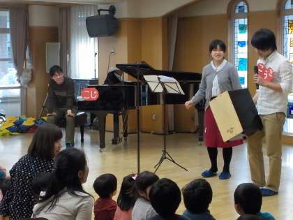 預かり保育のひと時・・京都芸術大学の学生さん3名によるミニコンサートが開かれました。