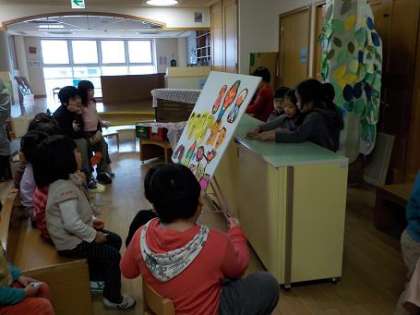 時間になると,大事にポケットにしまっていたチケットを持ち,2階の人形劇場まで走って行く姿がありました。パネルを使った本格的な人形劇に,子どもたちはとても長い時間見入っていました。5歳児の子どもたちもたくさんお客さんが来てくれた事が嬉しかったようで,午前中少ししか見れなかった3・4歳児の子どもたちに「お弁当終わってからもやるからね」「また来てね」と優しく声をかけていました。