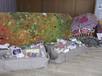 子どもたちが,この1年間につくったりかいたりしたものの中から,その子らしさが一番表れているものを展示しています。