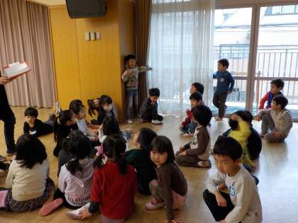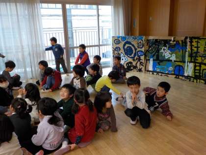 年長組は子どもたちで相談しながら,こうしよう,ああしようとどんどん思いがあふれて,共感し合いながら,みんなでつくりあげて,盛り上がってきている劇遊び。これからが楽しみですね。