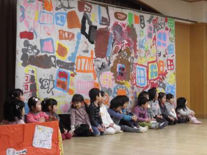 恥ずかしさから過緊張になってしまった子どもたちもいたようです。でも,一人一人どの子どもたちも精一杯頑張っていました。4月から今日まで先生や友達と毎日いろいろなことをして遊んできたことそのつながりの姿を見ていただけたのではないかと思っています。