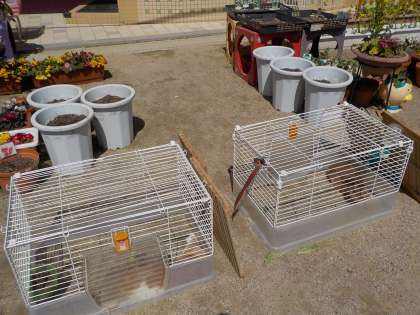静かな園庭でうさぎのかりかりちゃん達は暖かい日差しを浴びて気持ちよさそうにお昼寝しています。みんなで日向ぼっこです。