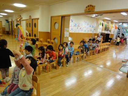 すると・・・「出発しまーす!」と運転手さんの声。「私も乗せてー!」「ぼくもー!」と、どんどん繋がってこいのぼり列車になりました。