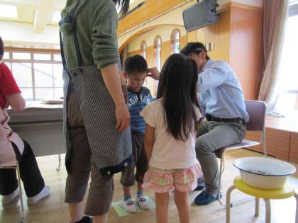 今日は耳鼻科検診を受けました。先週に歯科検診を経験している子どもたちですが,年少組はまだまだドキドキしている姿が見られました。