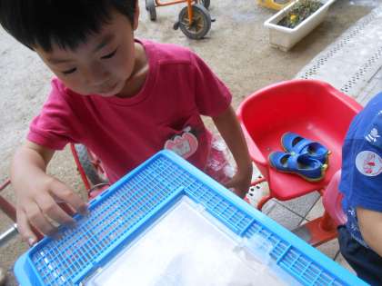 あおむしのときから大事に育てていたアゲハチョウの幼虫が,2週間前にさなぎになりました。チョウチョになるのを「まだかなぁ」と楽しみにしていました。そして今朝の登園時についにチョウチョになっているのを発見しました。子どもたちは「チョウチョになれてよかったね」と感じる嬉しい気持ちを感じていました。