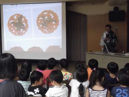 24日,5歳児の子どもたちが,学校運営協議会の方にゲストティチャーに来ていただき,祇園祭についての話を聞かせていただきました。