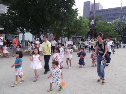 8月1日,今日は竹間夏祭りです。子どもたちがお家の方と竹間公園に来てくれました。