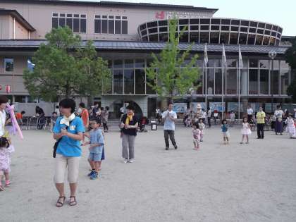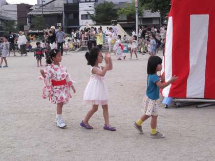 6時からは子どもたちの出番でした。先生やお家の人と一緒に,中京もえぎ音頭やまんまる音頭を何度も何度も踊ってくれました。可愛い姿を地域の皆様がニコニコ笑顔で見守ってくださっていましたよ。