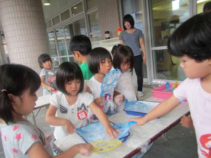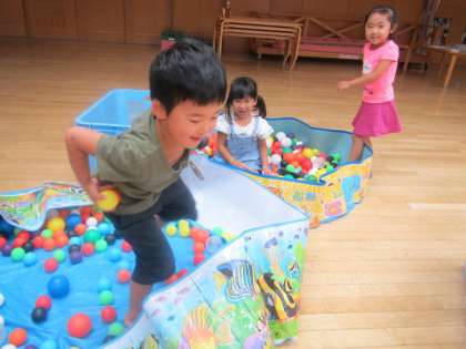特別にボールのプールをしたり,テラスでシャボン玉をして遊んだりして