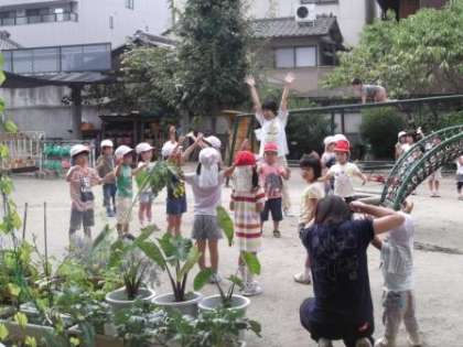 5歳児は水の中で体を伸ばしながら勢いよく楽しんでいました。自信をもってしたいことをどんどんしていっていました。幼稚園のプールで様々に経験し水ととても仲良しになったことを小学校でも生かしていってくれると思います。