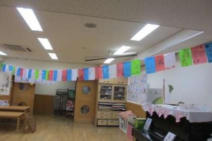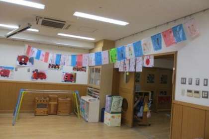 写真は5歳児の子どもたちがつくった旗の写真です。