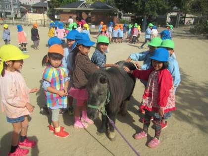 動物が帰ったあとも,「あのおおきなわんちゃん,なにしてるかな,お昼ご飯食べたかな」など思いを寄せていました。また幼稚園に遊びにきてほしいですね。