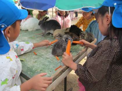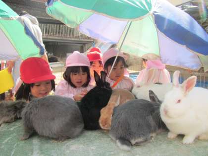 「やぎがいた!」「おっきいいぬもいたよ」「はやくよしよししたい」など動物と触れ合うことをとても楽しみにしたり,動物たちに餌をやることを楽しみに,お家から野菜や果物やパンが入った袋を握り締めて登園したりした子どももいました。