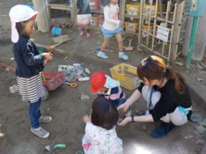 昨日の雨も上がり,気持ち良いお天気の中,子どもたちと一緒にリレーに参加してくださったり,砂場でご馳走づくりをしたり,年長児のキウィ狩りのお手伝いをしてくださいました。