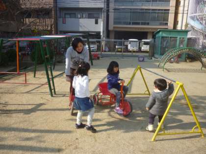 お正月は,とてもいいお天気が続きましたね。動物たちも植物たちも元気いっぱいです。今日もお昼間は穏やかなお天気で,預かり保育の子どもたちは久しぶりに園庭で遊びました。みんなで山をつくったり,穴を掘ったり,先生と一緒にスケーターに乗ったり。元気いっぱいの子どもたちの声が園庭に響き,とても楽しそうでした。