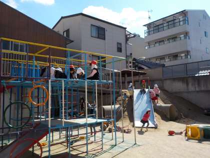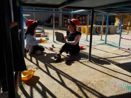 子どもたちは上手に日向を見つけて,お団子づくりをしたり,三輪車に乗ったり,レストランをしたり,大好きな先生と園庭で鬼ごっこをしたりと子どもたちの元気な声が響いていました。