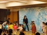 3歳児のもも組の子どもたちはこれまでの幼稚園の生活の中で楽しんできたことを表現遊びでも楽しみました。雪が降ったり凍ったりする表現を楽しんだり,忍者や恐竜,ウルトラマンやお姫様になって遊ぶことを楽しみました。友達や先生が大好きになって一緒に遊ぶことがとても嬉しい子どもたちです。歌もとても気持ちよく歌いました。初めての生活発表会に少しびっくりしたり,嬉しかったりしたけれど,お家の人を見つけて,とても張り切って楽しんでいました。