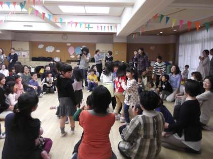 今日の椅子取りゲームの椅子はただの椅子ではなく,お家の人や先生のお膝でした。