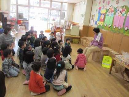 また,4歳児の子どもたちは,交通安全に関する紙芝居をクイズをしながら聞きました。