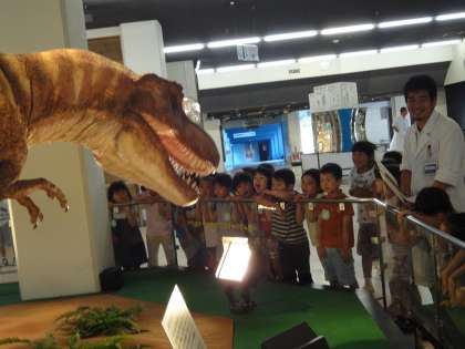 動く恐竜が面白い子どもや怖い子どもがいて、反応は様々でした。