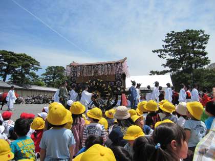 5歳児と葵祭の見学に行きました。約1時間、指定の場所に座らなければなりません。大勢ですから、前の人が立つと後ろは見えにくくなります。自然とマナーも身に付く機会にもなりました。行列には平安時代の様々な装束の人や馬、牛、乗り物などが登場してきました。大きくなった時、幼稚園時代に観に来たことを覚えていてくれると嬉しいです。