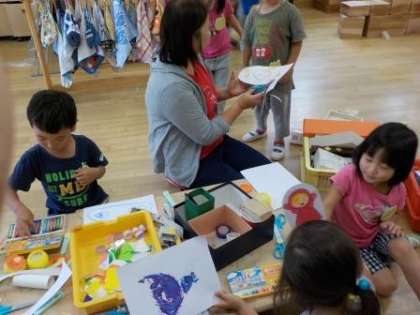たくさんのお友達が集まって,人形劇が始まりました。一人一人が自分はこんな役がいいと思いを持ちながら人形を動かします。まだストーリーを考えることは難しいようでしたが,それでも昨日経験した人形劇を思い出しながら人形を動かしたり,それを見たりすることが楽しい様子でした。改めて子どもたちの経験から遊びが生まれ,毎日の生活がつながっていくのだと感じました。