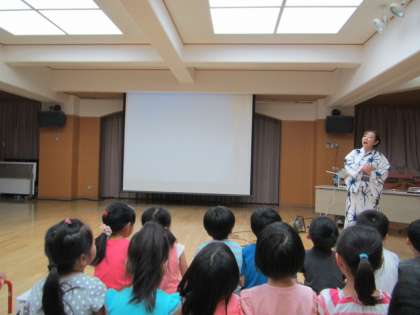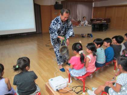 地域の方をゲストティーチャーにお招きして,5歳児が,祇園祭お話の会をしました。