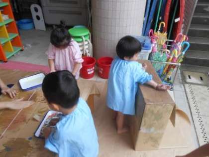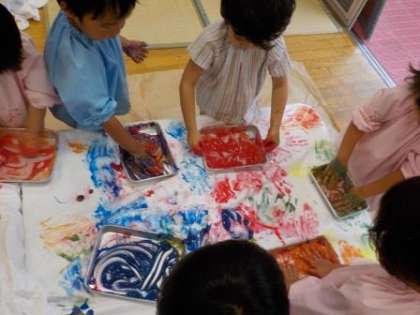 何にでも興味をもち,やってみたいと思う子どもたちです。絵具など,これからも一緒に楽しんでいろいろな経験を積み重ねていきたいと思います。